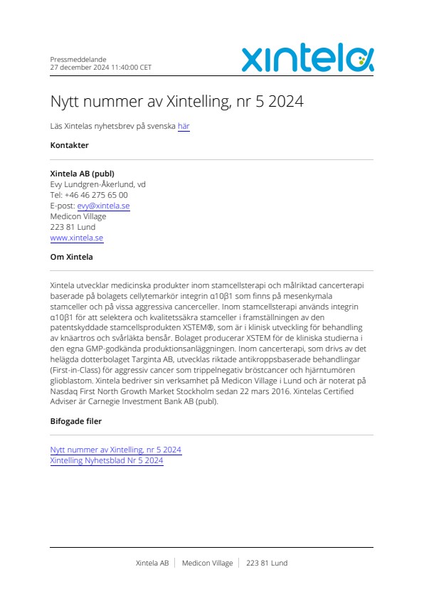 Läs Xintelas nyhetsbrev på svenska här